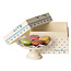 4 délicieux macarons présentés sur un magnifique présentoir à gâteaux peint à la main avec des serviettes en papier décoratives comme touche finale. Emballé dans une belle boîte cadeau. Vos lapins et souris Maileg pourront en profiter!