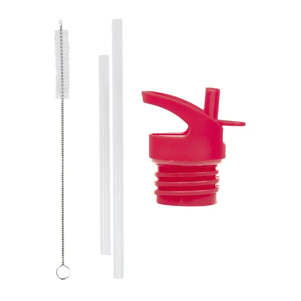 Set für Trinkflaschen, bestehend aus einem roten Verschluss, einem Strohhalm und einer Bürste für die 350- und 500-ml-Edelstahl-Trinkflaschen von A Little Lovely Company.