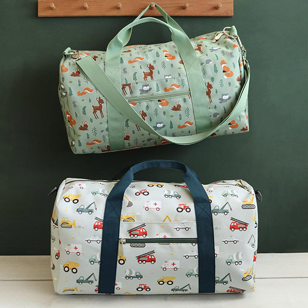 Diese Reisetasche mit wunderschönem Fahrzeuge Design ist eine geräumige und praktische Reisetasche für eine Pyjamaparty oder zum Mitnehmen auf eine Reise. Die Tasche verfügt über zwei Griffe und einen verstellbaren und abnehmbaren Schultergurt, ein geräumiges Hauptfach mit einer Extratasche, zwei Seitentaschen und eine Fronttasche mit Reißverschluss. Die Reisetasche besteht aus starkem Polyester, ist leicht und an der Unterseite mit schützenden Noppen versehen.