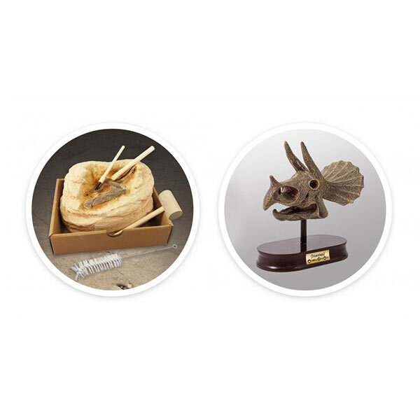 Mit diesem Ausgrabungsset graben Sie mit den enthaltenen Werkzeugen Hammer, Meißel und Bürste einen Dinosaurierschädel eines Triceratops aus. Der Dinosaurierschädel befindet sich in einem Gipsblock, den Kinder ausgraben können. Fertig mit graben? Dann stellen Sie den Dinosaurierschädel auf einem Ständer wie im Museum aus.