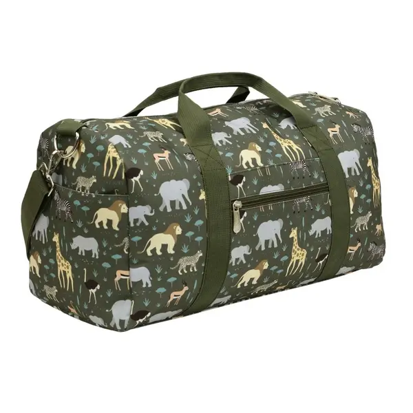 Die geräumige, graue Wochenendtasche mit Savannentieren ist ideal für Urlaub, Übernachtungen oder als Sporttasche. Diese vielseitige Tasche hat einen doppelten Henkel und einen verstellbaren, abnehmbaren Schultergurt für optimalen Tragekomfort. Die Tasche besteht aus einem Hauptfach mit einer Innentasche, zwei Seitentaschen und einer Reißverschlusstasche auf der Vorderseite. Außerdem ist die Tasche als Handgepäck geeignet (beachten Sie immer die Richtlinien der Fluggesellschaft).