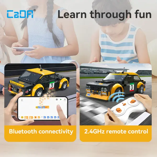 Das CaDA-Bausteinmodell Fiat Abarth 131 im Maßstab 1:20 kombiniert detaillierte Bausteine mit innovativer Technologie. Die aus Bausteinen gefertigte Karosserie des Autos ist auf einem festen Chassis montiert, das über eine Funkfernsteuerung oder eine mobile App gesteuert werden kann. Eines der herausragenden Merkmale ist die Drag-and-Drop-Programmiersteuerung, mit der Benutzer benutzerdefinierte Bewegungssequenzen erstellen können, indem sie einfach Befehle auf einem Bildschirm anordnen. Diese Schnittstelle verbessert nicht nur das interaktive Erlebnis, sondern dient auch als hervorragende Einführung in grundlegende Programmierkonzepte und ist somit ein pädagogisches Hilfsmittel, das Kreativität und logisches Denken auf unterhaltsame und spannende Weise fördert.