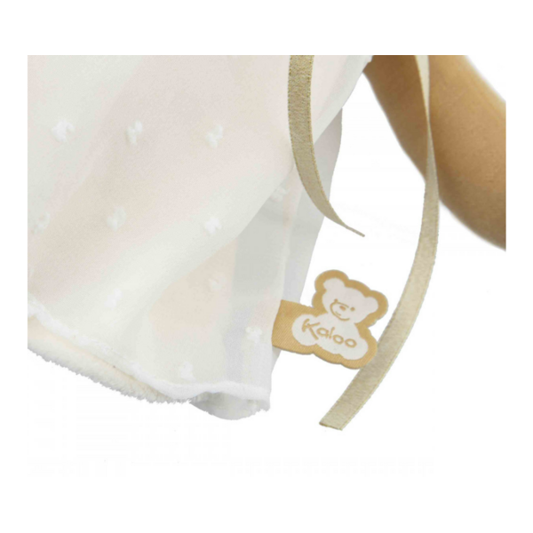 Lernen Sie Daphne kennen: eine wunderschöne, elegante Stoffpuppe von 25 cm Größe! Sie ist für Babys ab der Geburt geeignet und gehört zur Tendresse-Puppenkollektion von Kaloo. Daphne ist elegant gekleidet in einem elfenbeinfarbenen Organza-Kleid mit Punkten und bereit, kostbare Momente wie eine Taufe oder eine Hochzeit zu feiern. Ihre wunderschön gestylte Hochsteckfrisur verleiht ihr einen Hauch von Eleganz und ihre passenden Schuhe runden ihren raffinierten und eleganten Look ab. Daphne ist eine Puppe, die die Reinheit und Sanftheit kostbarer Momente widerspiegelt. Ihr ätherisches Outfit wird durch eine zarte Blumenkrone als letzte poetische Note unterstrichen. Mit ihrem friedlichen Blick und ihrem zarten Aussehen lädt Daphne zu Sanftheit und Träumereien ein. Sie scheint direkt aus einem stillstehenden Moment zu stammen, in dem Stille beruhigt und zärtliche Gesten trösten. Sie verkörpert jene ruhigen Momente, in denen wir uns Zeit nehmen, um zu fühlen, wie eine leichte Brise, die die Haut streichelt. Sie ist unglaublich weich, für kleine Hände leicht zu greifen und wird schnell zur perfekten Kuschelfreundin. Diskret und charmant wird Daphné ganz natürlich Teil des Alltags eines Kleinkindes. Auf einem kleinen, aufgenähten Band auf ihrem Rücken können Sie den Namen des Babys schreiben, wodurch sie zu einer einzigartigen und wertvollen Freundin wird. Verpackt in einer schönen Schachtel ist sie ein originelles Babygeschenk, voller Lieblichkeit und Fantasie. Sie eignet sich auch perfekt als erste Puppe, um die Fantasie eines Kindes anzuregen. Diese Stoffpuppe wurde sorgfältig hergestellt und besteht zu mindestens 80 % aus recycelten Materialien, einschließlich der Füllung aus recyceltem Polyester. Diese niedliche Puppe ist bei 30 °C in der Maschine waschbar und bereit, adoptiert zu werden und viele Jahre lang geliebt zu werden!