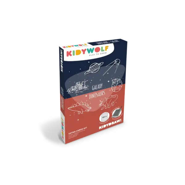 Kidywolf | Nachfüllpackung Kidydraw – Mini-Extra-Karten mit den Themen Galaxie und Dinosaurier
