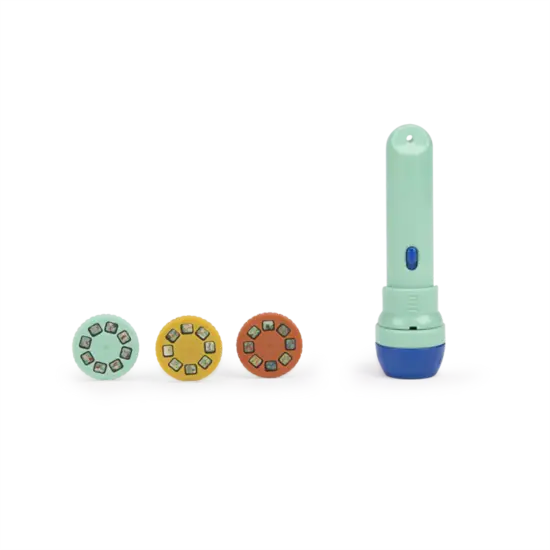 Mit der Taschenlampe wird das Geschichtenerzählen zum Kinderspiel! Enthält eine Projektionslampe und 3 Scheiben, um schöne Geschichten über Dschungeltiere zu erzählen. Machen Sie das Licht aus und begeben Sie sich auf den Weg ins Traumland...