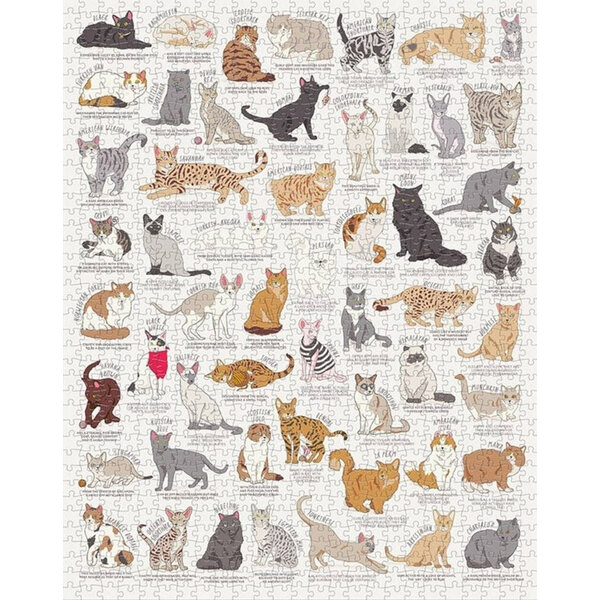 Der Traum eines jeden Katzenliebhabers! Setzen Sie die Teile zusammen, um dieses purrrfekte Ridley's Games Cat Lovers 1000-Teile-Puzzle mit glänzender Lackierung zu enthüllen. Das Originalpuzzle enthält 54 handgezeichnete Illustrationen von Katzen und interessante Merkmale jeder Rasse, wobei das Ridley's Games-Logo auf der Rückseite wiederholt wird. Nach Fertigstellung passt das Puzzle perfekt in einen Standardrahmen von 56 x 71 cm und kann an Ihrer Wand aufgehängt werden. Verpackt in einer Rolle mit einer praktischen Posteranleitung, die halb so groß ist wie das Puzzle.