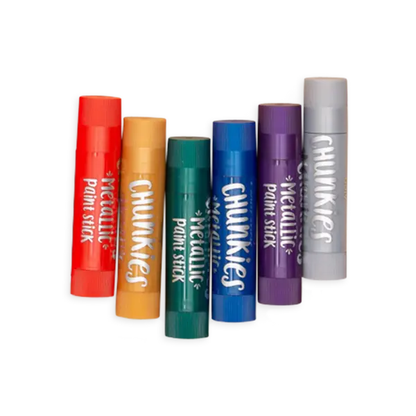 Bringen Sie Glanz in Ihr Leben mit Chunkies Metallic Paint Sticks in einer reisefreundlichen 6er-Packung! Diese glänzenden Metallic-Farbstifte liegen gut in der Hand und sind in 6 satinierten, schnell trocknenden Metallic-Farben erhältlich. Drehen Sie die Stifte nach oben und schon können Sie stundenlang kleckerfrei malen – ein Spaß für Kinder und Erwachsene. Wenn Sie farbenfrohe Zeichnungen ohne Kleckern erstellen möchten, ist es Zeit, Chunkies Metallic Paint Sticks zu verwenden. Chunkies sind superleicht zu verwenden, sauber und tragbar, da sie wie Buntstifte funktionieren. Einfach die Kappe abdrehen, nach oben drehen und mit dem Malen beginnen. Chunkies Metallics sind ein Set aus 6 glänzenden Farbstiften in einer dicken Hülle, sodass sie für kleine Hände leicht zu halten sind. Die Farben trocknen schnell und verschmieren nicht, aber Sie können die Farben leicht mischen, um noch mehr Farben zu erhalten. Es ist magisch!