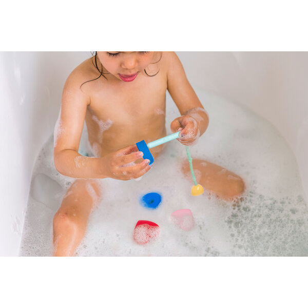 Die allerersten Fädelperlen für Ihr Kind! Ab einem Alter von 10 Monaten kann Ihr Kind mit den großen Blöcken aus weichem Schaumstoff spielen, die auf dem Wasser schwimmen und an den Seiten der Badewanne haften bleiben. Ab einem Alter von 18 Monaten kann es die Perlen mit der Nadel auffädeln, um seine kognitiven Fähigkeiten zu fördern und seine Hand-Augen-Koordination zu verbessern. Mit dem Saugnapf können Sie Ihr Badezimmer mit den Perlenkreationen Ihres Kindes dekorieren. So wird das Badezimmer gleich viel kinderfreundlicher.