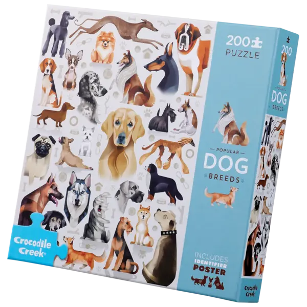 Achtung, alle Hundeliebhaber! Dieses bezaubernde 200-teilige Puzzle enthält eine wunderschöne Sammlung beliebter Hunderassen, illustriert in einem schönen Aquarellstil. Von kleinen Chihuahuas bis hin zu freundlichen Riesen wie Deutschen Doggen – Puzzle-Fans werden viel Spaß dabei haben, mehr als 30 beliebte Rassen zu erkennen und zusammenzusetzen.