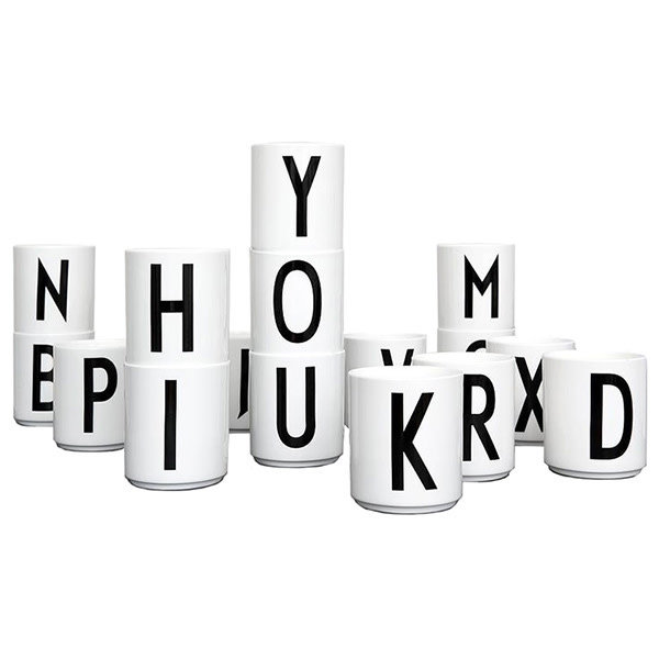 Design Letters Melamin Becher mit jedem Buchstaben des Alphabets von A-Z zur Verfügung. Diesem stilvollem Becher mit AJ Vintage ABC Schrift von Arne Jacobsen, entworfen von seinem Enkel Tobias Jacobsen kann definitiv nicht bei Ihnen zu Hause fehlen. Der Becher ist in Kombination mit der passenden Schüssel, Teller und Besteck, das idealen Melamin Geschirr für Kinder, um als Geburt Geschenk, Geburtstagsgeschenk oder andere besondere Gelegenheiten zu geben. Darüber hinaus ist diesem Becher auch schön wie Dekoration in Ihrem Interieur oder Kinderzimmer. Sie können den Becher als perfekter Stift Topf oder Blumentopf verwenden. Der Becher ist schön in einer Schachtel verpackt.