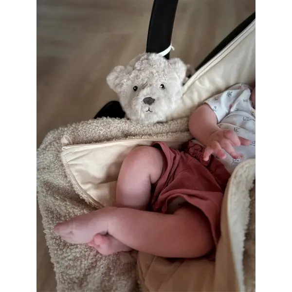 Der Comforter on the go ist eine schmalere Version, die Sie leicht mitnehmen können. Ein Kuscheltier mit Spieluhr, das Ihrem Kind unterwegs ein Gefühl von Sicherheit und Ruhe vermittelt. Mit der Schnur lässt sich der Bärenkopf leicht an Ihrem Maxi Cosi oder Kinderwagen befestigen.