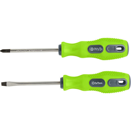 - Inhalt: 1 Kreuzschraubendreher und 1 Schlitzschraubendreher