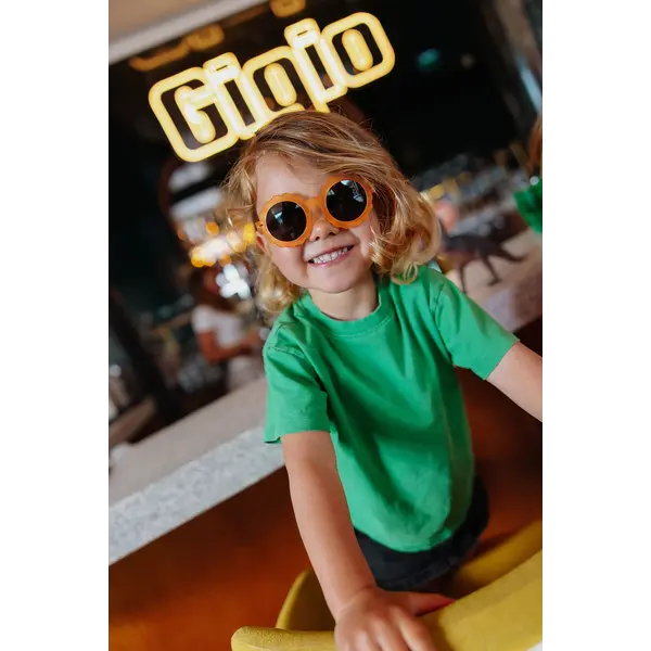 Die Chamy Mango Sonnenbrille von Hello Hossy ist mit ihren frischen, sonnigen und vielseitigen Farben die ideale Kinder-Sonnenbrille für sonnige Tage und Jahreszeiten. Die Sonnenbrille schützt die Augen Ihres Kindes vor ultravioletter Strahlung und bietet 100 % UV-Schutz – UV400 Kategorie 3. Sowohl Jungen als auch Mädchen im Alter von 2–3 Jahren, 3–5 Jahren und 5–8 Jahren können diese polarisierte Kindersonnenbrille im Sommer und Winter tragen. Die Sonnenbrille sitzt bequem, ist hip, flexibel, leicht, farbenfroh und fühlt sich dank ihrer matten Struktur sehr angenehm an. Hello Hossy hat sich für polarisierte Tri-Acetat-Cellulose-Gläser (TAC) entschieden, um den Sehkomfort von Kindern zu verbessern und zu verhindern, dass sie durch Lichtreflexionen geblendet werden, unabhängig vom Verwendungskontext und der Jahreszeit.