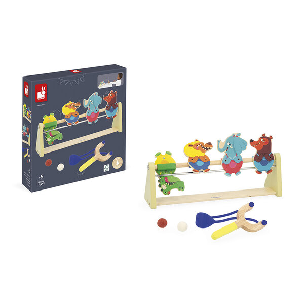 Das Catapult knock them over game von Janod ist ein spannendes und aktives Holzspiel, bei dem Kinder mit einem Katapult bunte Kugeln abschießen, um Figuren umzuwerfen. Dieses lustige Spiel fördert die Hand-Augen-Koordination und die motorischen Fähigkeiten und ist ein großer Spaß für Kinder ab 5 Jahren. Perfekt für kleine Entdecker!