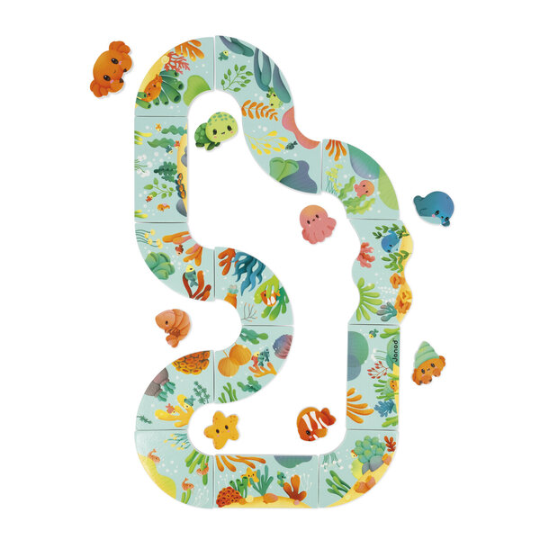 Verwandle die Badezeit in ein spannendes Abenteuer mit unserem Hindernisparcours für die Badewanne. Der Parcours besteht aus 13 Teilen zum Zusammenbauen und 8 Tieren, mit denen dein Kind ein echtes Unterwasser-Abenteuer erleben kann! Die Teile haften an den Fliesen, sobald sie feucht sind. Ihr Kind muss den Parcours nur nach eigenem Ermessen zusammenbauen und die versteckten Tiere finden und bei den richtigen Eltern platzieren. Ein praktisches Aufbewahrungsnetz mit Saugnäpfen ist im Lieferumfang enthalten. Ideal für die Entwicklung des Sehvermögens und der Feinmotorik. Badespielzeug für Kinder ab 18 Monaten.
