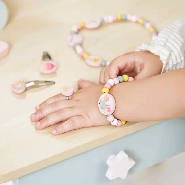 Eigenschaften dieses Janod | Einhorn Holz Frisiertisch und Zubehör: