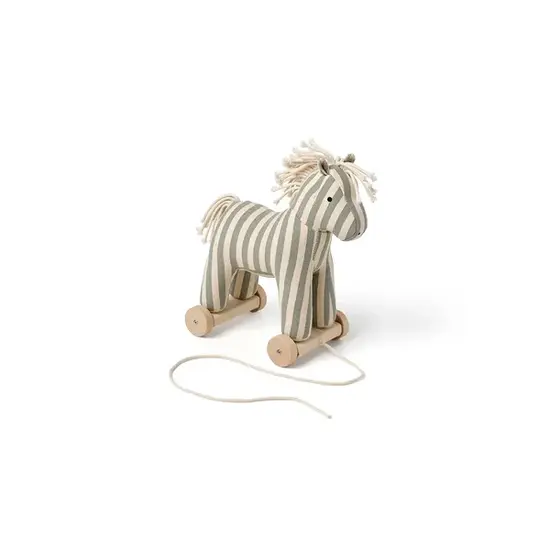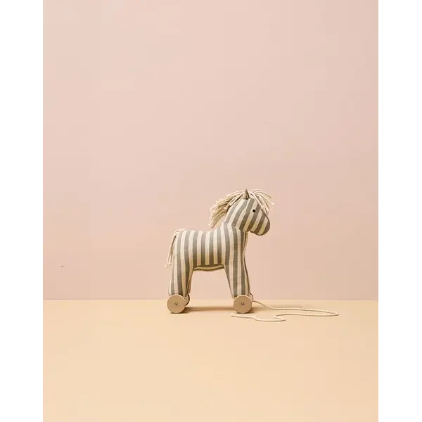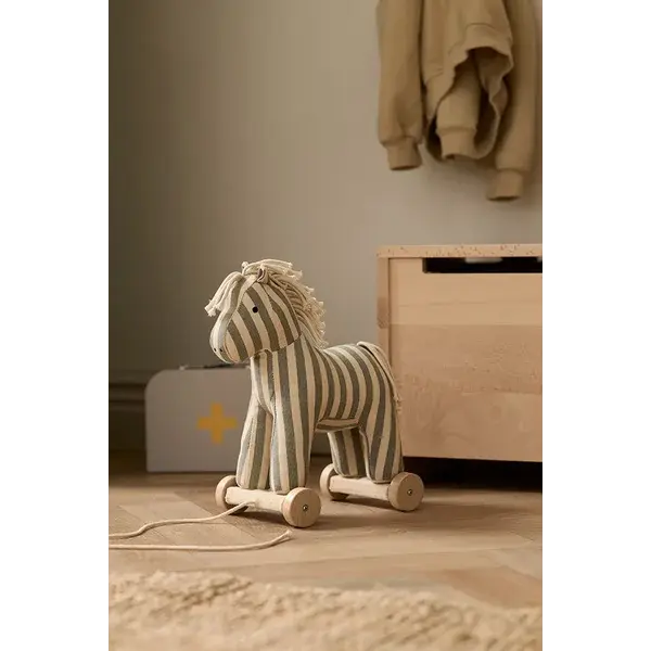 Lerne Sam kennen, das niedliche Zugpferdchen aus robustem Baumwoll-Canvas mit Streifenmuster. Mit seiner Mähne und seinem Schweif aus weichem Baumwollgarn lädt Sam sowohl zum Kuscheln als auch zum aktiven Spielen ein. Dank der Schnur kannst du ihn ganz einfach auf Spaziergänge mitnehmen, wobei jeder Schritt dein Gleichgewicht und deine Koordination fördert. Wenn die Rädchen entfernt werden, wird Sam zu einem kuscheligen Schmusetier – perfekt für ruhige Momente oder Rollenspiele. Sein freundlicher Blick und seine weiche Textur machen ihn zu einer beruhigenden Präsenz, während seine handliche Größe ihn leicht auf tägliche Abenteuer mitnehmbar macht. Ob er nun hinter dir herrollt oder auf einem Regal liegt, Sam ist ein treuer Begleiter, der für alles bereit ist, was ihm in den Weg kommt