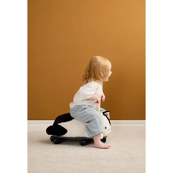 Sture ist immer bereit, durch das Haus zu sausen. Dank seines weichen Fells und seines verspielten Charakters ist er ein toller Begleiter für aktives Spielen. Kinder können darauf springen und es mit dem Holzgriff lenken, während sie sich durch lustige Abenteuer im Haus bewegen und den Komfort des weichen Fells genießen. Dieser Laufwagen ist für Kinder ab 18 Monaten konzipiert und verfügt über fünf um 360 Grad drehbare Räder, um sich mühelos in jede Richtung bewegen zu können. Sture regt Kinder dazu an, beim Schieben und Lenken ihr Gleichgewicht und ihre Koordination zu entwickeln. Sicherheitshinweis: Dieses Spielzeug verfügt über keine Bremsen. Beaufsichtigen Sie Kinder während der Benutzung stets und sorgen Sie dafür, dass sie sich in einer sicheren Umgebung ohne Treppen oder unebene Oberflächen befinden.