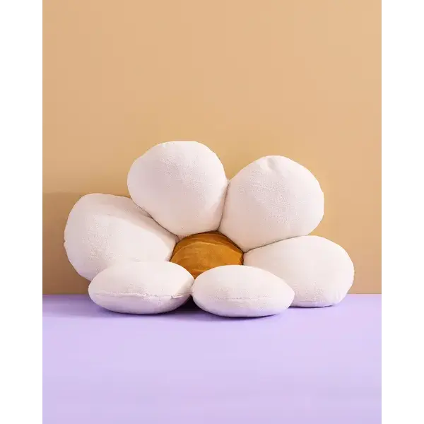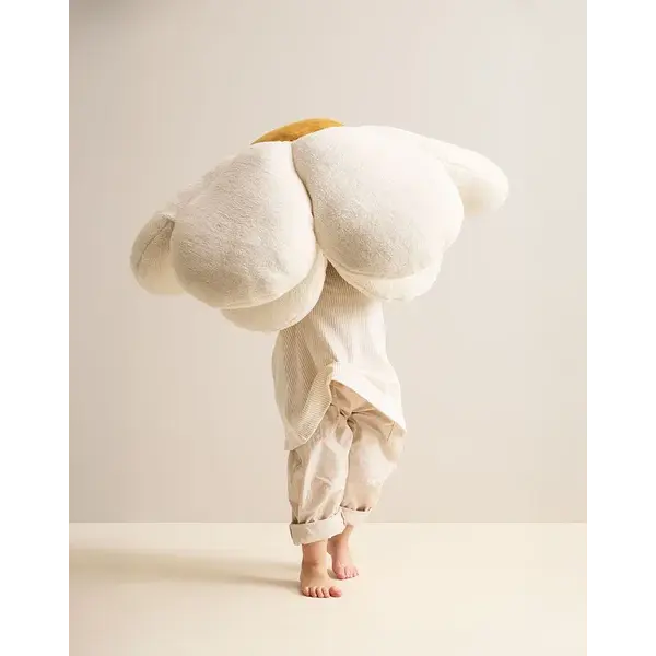Ein weicher Ort zum Ausruhen, Blütenblatt für Blütenblatt Dieses große Bodenkissen in Form einer Blume verwandelt jeden Ort in eine gemütliche Oase der Ruhe. Mit weichen, abgerundeten Blütenblättern aus Sherpa-Stoff und einem samtweichen Kern ist es wie geschaffen für ruhige Momente, zum Lesen oder für entspanntes Spielen. Die Blütenblätter bestehen aus weichem Sherpa – einem strukturierten Baumwollmischgewebe mit einer warmen, wollartigen Textur, die zum Anfassen einlädt. Das Herz (oder die Blütenmitte) besteht aus glattem Baumwollsamt für zusätzlichen Kontrast und Komfort. Dieses Bodenkissen ist mit recyceltem Polyester gefüllt und aus OEKO-TEX-zertifizierten Materialien gefertigt und verbindet weiche Texturen mit schlichter Funktionalität. Verwenden Sie es einzeln im Wohnzimmer, als Sitzgelegenheit für Vorlesestunden oder um einem Spielzelt eine weiche Note zu verleihen. Wir empfehlen, das Kissen chemisch reinigen zu lassen oder Flecken mit einem Mikrofasertuch zu entfernen. Das Kissen kann auch mit einer kleinen Bürstendüse abgesaugt werden.