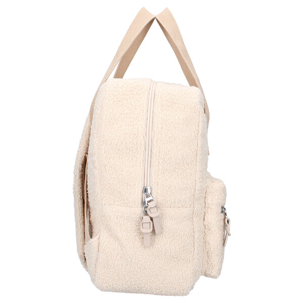 Dieser niedliche Rucksack von Kidzroom aus der Soft Whispers-Kollektion ist komplett aus Teddystoff gefertigt! Die Tasche ist beigefarben und hat ein geräumiges Hauptfach, das mit einem Reißverschluss geschlossen wird. Außerdem hat die Tasche eine Vordertasche. An der Oberseite des Rucksacks befinden sich 2 praktische Griffe, so dass die Tasche leicht in der Hand getragen werden kann. Außerdem sind die Schultergurte verstellbar und können für jeden individuell angepasst werden.