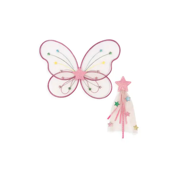 Feenkostüm mit Flügeln und einem Zauberstab, um etwas Magie zu verbreiten.