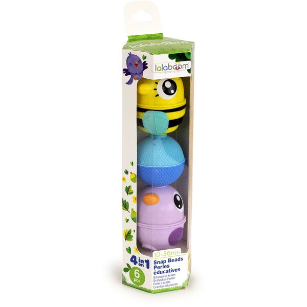 Lernperlen inklusive 2 Tierperlen (gelbe Biene und lila Vogel). 6 Teile. Geeignet für Kinder von 10 Monaten bis 3 Jahren. Ihr Kind kann die Perlen und alle anderen Lalaboom-Spielzeuge miteinander verbinden und so unendlich viele Spielmöglichkeiten entdecken. Die Lalaboom-Perlen sind spülmaschinenfest.