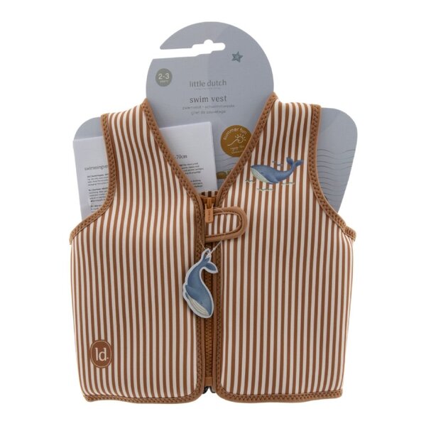 Diese Little Dutch Ocean World Schwimmweste ist ein Must-have für Kinder, die gerne schwimmen. Mit ihrem V-Ausschnitt und dem ärmellosen Design bietet diese Schwimmweste jungen Schwimmern höchsten Komfort und Bewegungsfreiheit. Mit ihrem Streifenmuster und dem Wal-Print stiehlst du zudem am Strand oder im Schwimmbad alle Blicke. Das Material sorgt für zusätzlichen Auftrieb und Sicherheit im Wasser. Dank Klettverschluss und Reißverschluss lässt sich die Schwimmweste leicht an- und ausziehen, sodass Kinder schnell bereit zum Schwimmen sind. Dieses Produkt ist eine Hilfsmittel und sollte immer unter Aufsicht eines Erwachsenen verwendet werden. Wird auf einer Karte mit Eurolog geliefert. Empfohlenes Alter: 2–3 Jahre, 15–19 kg und Brustumfang 64 bis 70 cm.