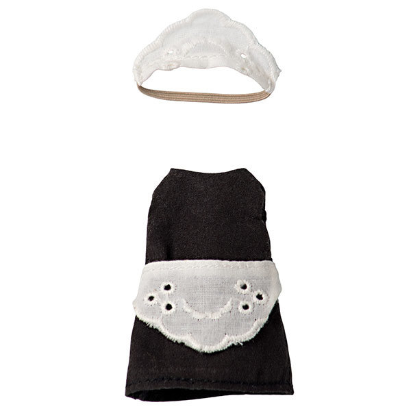 Das Kleiderset Dienerin ist eine schöne Ergänzung für Ihre Maileg Kollektion. Mit dieses Kleidungsset verwandeln Sie Ihre Maileg Mäuse in eine Dienerin. Klassisches Dienstmädchenkleid bestehend aus Kleid mit Schürze und Stirnband. Das Kleidungsset besteht aus Baumwolle und ist für große Schwestermäuse von 13 cm geeignet.
