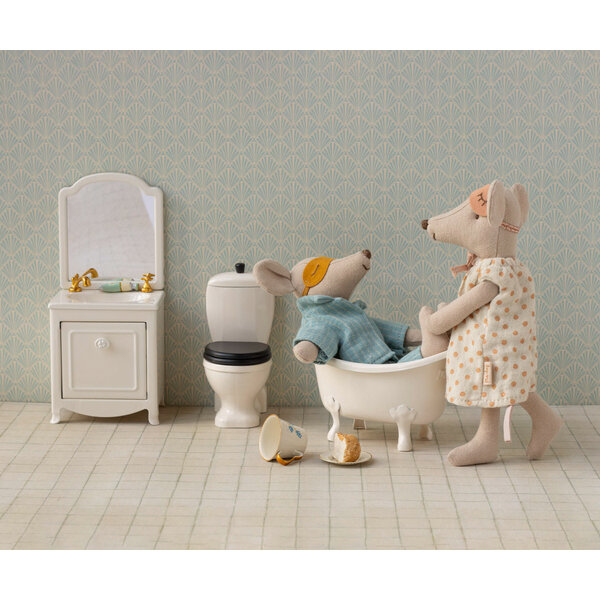 Ein unverzichtbares Element für das Badezimmer in Mouse Hole Farmhouse. Es verfügt über einen kleinen Schrank unter dem Waschbecken und natürlich auch über einen Spiegel. Fügen Sie die Maileg-Toilette und -Badewanne hinzu, um den Spielspaß noch weiter zu steigern.