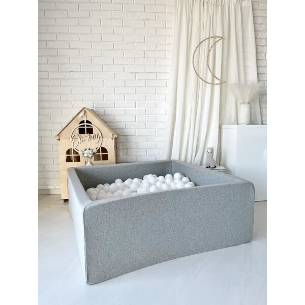 Moje Moje | Bällebad Quadratisch Baumwolle - Hellgrau 106x106x40 cm + Ballen