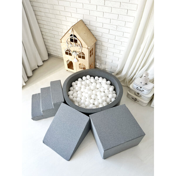 Das 3-teilige Set mit Ballpool ist eine vielseitige Kombination aus weichen Spielelementen (Treppe, Dreieck und quadratischer Block) und einem Ballpool (90 x 30 cm) inklusive 200 Bällen. Das Set besteht aus sicheren, atmungsaktiven Materialien mit einem Baumwollbezug und bietet endlose Spiel- und Entwicklungsmöglichkeiten. Dank des cleveren Designs passen die Elemente perfekt zum Ballpool, wodurch dieser besonders stabil ist und die Bälle nicht herausfallen können.