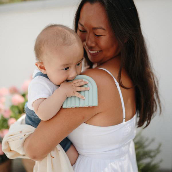 Beißring Rainbow cambridge blue sorgt für Erleichterung, wenn die Zähne durchkommen. Der Beißring besteht aus 100% BPA und phthalatfreiem Silikon. Der Beißring lässt sich leicht mit warmem Wasser und Seife reinigen und trocknen lassen. Geeignet von Geburt an.