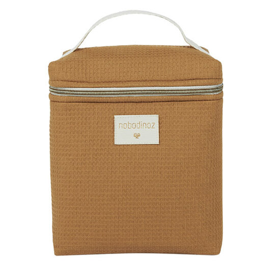 Mit diese isolierte Kühltasche in wunderschönem Caramel aus der Nobodinoz Concerto Kollektion können Sie Trinkflaschen, Babyflaschen oder Snacks für sich und Ihre Kinder transportieren. Ideal zum Warm- und Kalthalten. Die Kühltasche bietet Platz für zwei Flaschen und ein paar kleine Döschen. Innen ist die Kühltasche mit Isolierfolie versehen, sie schließt mit einem Reißverschluss und verfügt oben über einen Tragegriff. Dank ihres schlichten Designs und der neutralen Farbe passt diese praktische Kühltasche perfekt zu jedem Stil.