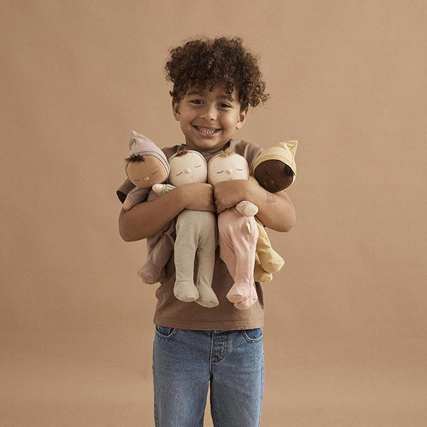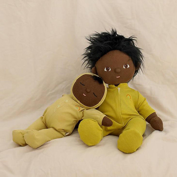 Begrüßen Sie Dozy Dinkum Mini! Diese super süße Puppe ist aus weiche Bio-Baumwolle gefertigt. Die ideale Puppe zum Kuscheln, Spielen und Schlafengehen. Abgerundet mit schönen gestickten Details im Gesicht, einem nicht abnehmbaren Baumwoll-Strampler mit einem gestickten Regenbogen auf dem Herzen. Diese süße Puppe ist ein wunderbares Geschenk.