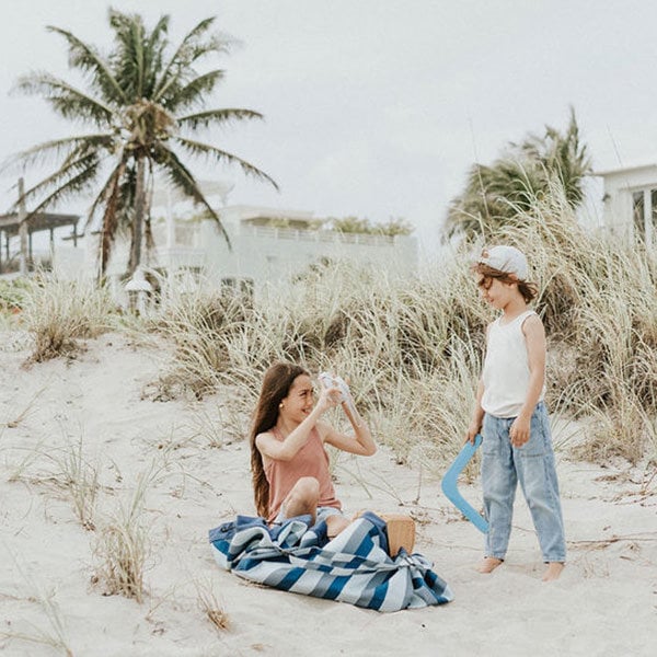 Wissenswertes: Die Aufbewahrungstasche hat ein Loch in der Mitte, so dass der gesamte Sand nach einem Strandbesuch leicht auslaufen kann.