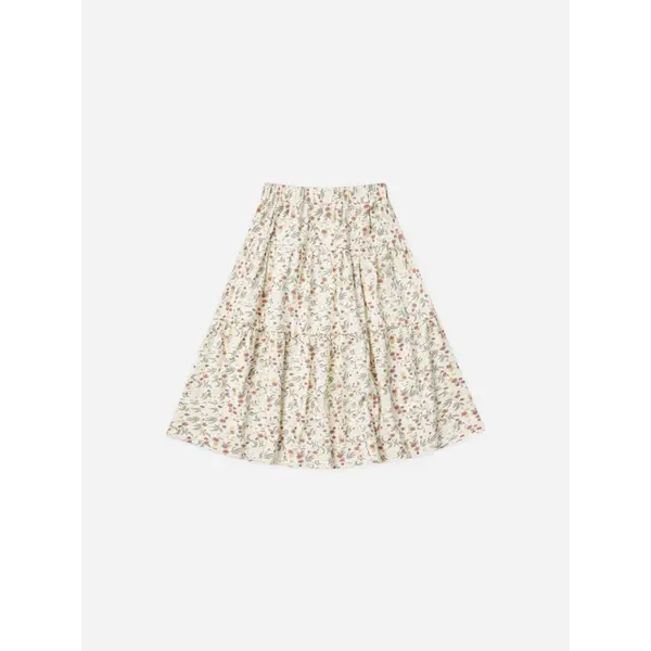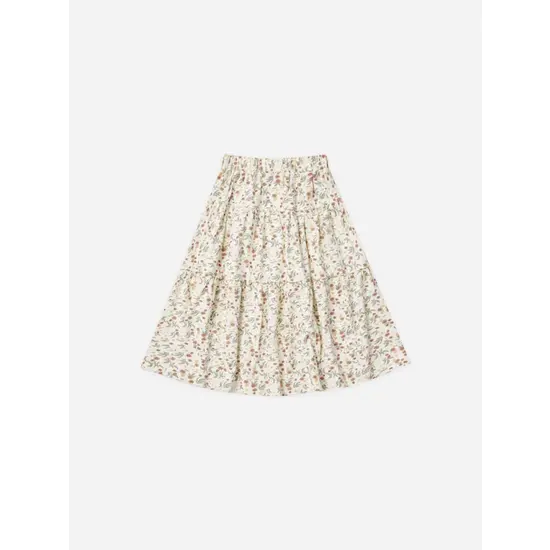 Dieser Midirock aus Baumwolljersey hat drei fließende Reihen, einen elastischen Bund und viel fließenden Spaß.