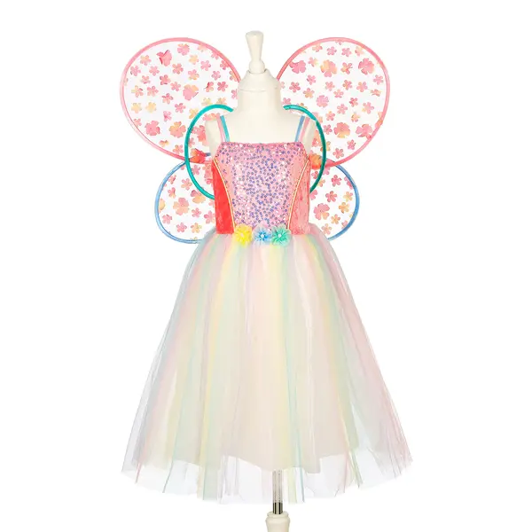 Die kleine Fee Flora liebt es, durch den Garten zu spazieren und all die schönen und bunten Blumen zu betrachten. Mit einer Berührung ihrer Hand kann sie ihre Zauberkraft einsetzen und alle Blumen zum Blühen bringen! Das Kleid Flora besteht aus 100 % Polyester. Die Länge des Rocks beträgt 47 cm (3–4 Jahre), 56 cm (5–7 Jahre) und 67 cm (8–10 Jahre).