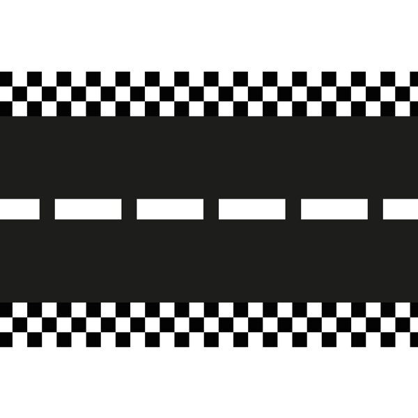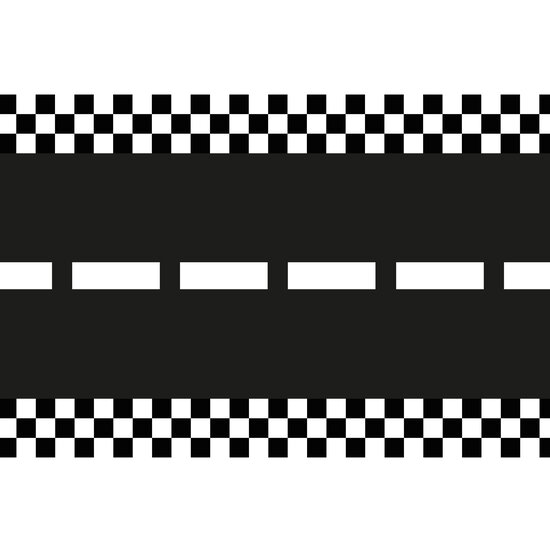 • Rennbahn aus Vliesstoff mit schwarz-weißem Druck.