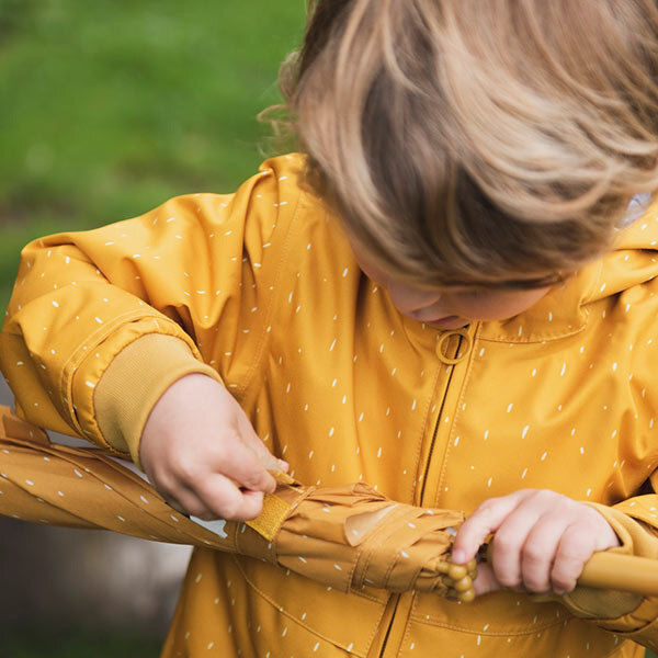 Mit Regenschirm Mr. Lion bekommt ein grauer Regentag sofort Farbe! Unter diesem Kinderschirm bleiben Sie schön trocken. Der Regenschirm besteht zu 100% aus recyceltem Polyester. Das Schiebesystem zum Öffnen und Schließen des Regenschirms ist speziell für Kinderhände konzipiert, damit Kinder den Regenschirm sicher und reibungslos benutzen können. Dieser Kinderschirm hat ein stabiles, hochwertiges und sehr leichtes Aluminiumgestell.