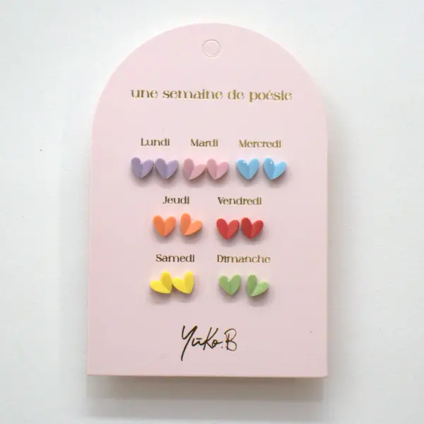 7 Paar Keramik- und Edelstahlohrringe, ein Paar pro Wochentag. Jedes Set wird in einem schönen Geschenkumschlag geliefert.