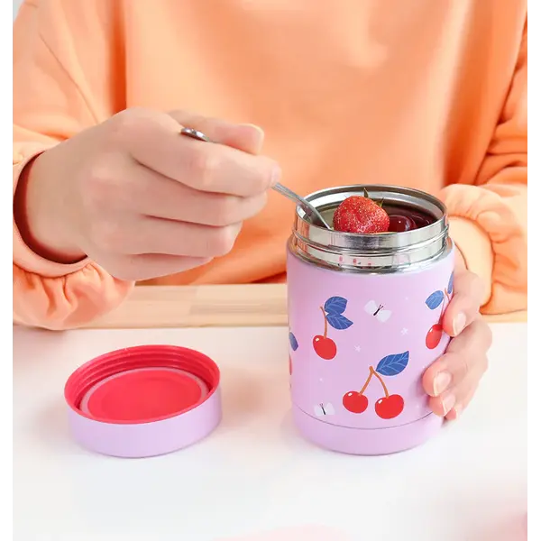 Features of this A Little Lovely Company | Insulated Stainless Steel Food Container Cherry: