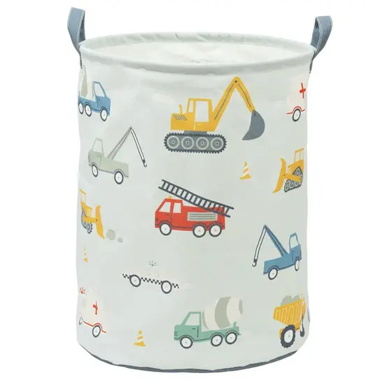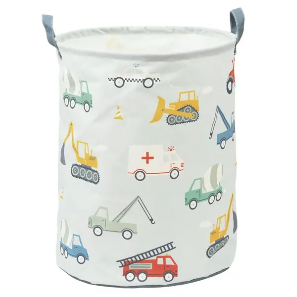 This spacious, cotton light blue vehicle storage basket is ideal for storing toys. Thanks to the PE coating on the inside, the basket is also suitable for collecting laundry.