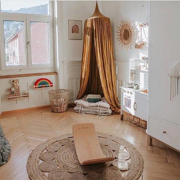 With the balance board Wobbel Original clear lacquered with cork it is great to play, swing, relax and move. This balance board encourages young and old to play imaginatively and move! Your balance board can be whatever you imagine: a balance board, swing, bridge, shop, hut, race track, lounge chair, gym equipment, the back of an elephant, ... and much, much more! The Wobbel Original is covered with cork, ideal for children playing! The cork reduces noise, prevents scratches on the floor and on the Wobbel.