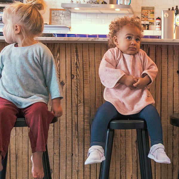 Practical bib with sleeves Misty rose, suitable for protecting clothing. Made from soft, breathable bamboo terry and therefore extra absorbent and anti-bacterial. A nice, soft bib; ideal for toddlers who want to eat themselves.