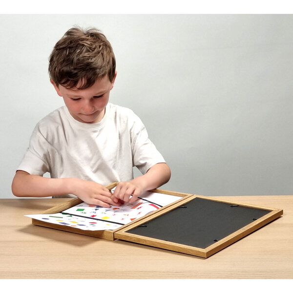 A drawing set with a frame for storing and displaying children's drawings.