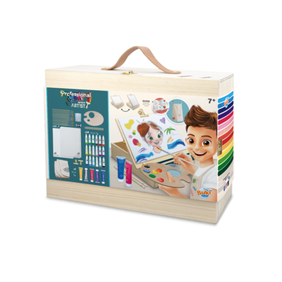 Put on your apron and learn the techniques of acrylic painting with this wooden art box that can be converted into an easel.