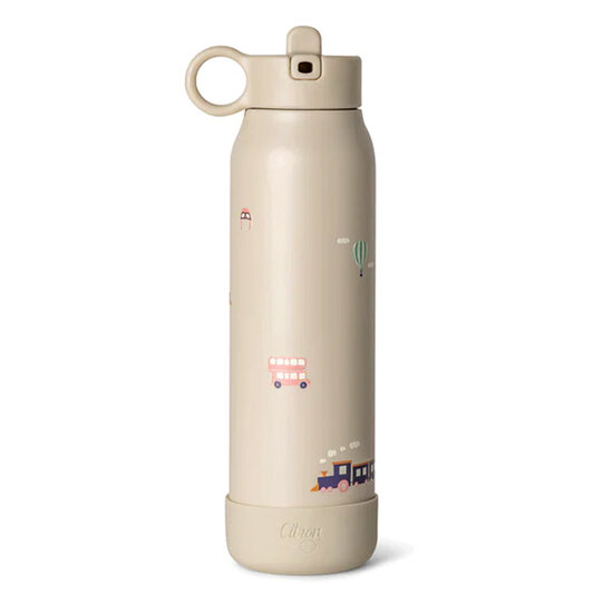 This 350 ml thermo drinking bottle with beautiful Vehicles design is the ideal triple insulated water bottle for on the road and to school. This drinking bottle keeps liquids warm for up to 12 hours and cool for up to 24 hours. The bottle comes with 1 lid, two straws, a cleaning brush and has a removable bumper at the bottom that makes the drinking bottle shock resistant.