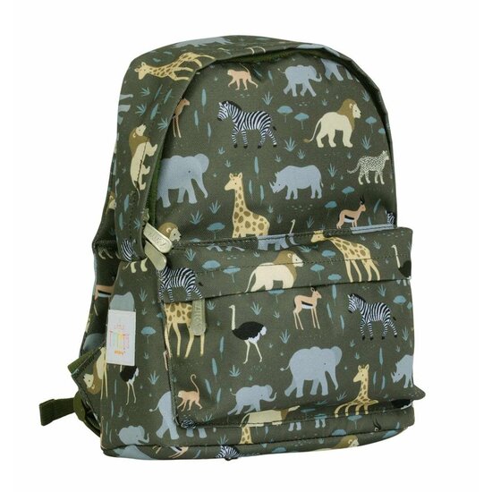 The small, grey rucksack with savannah animals is ideal for taking to school or nursery. The toddler rucksack has a spacious main compartment and a zipped pocket on the front. The rucksack also has padded shoulder straps and a padded back panel. The rucksack also has a chest strap to prevent it from slipping off the shoulders.