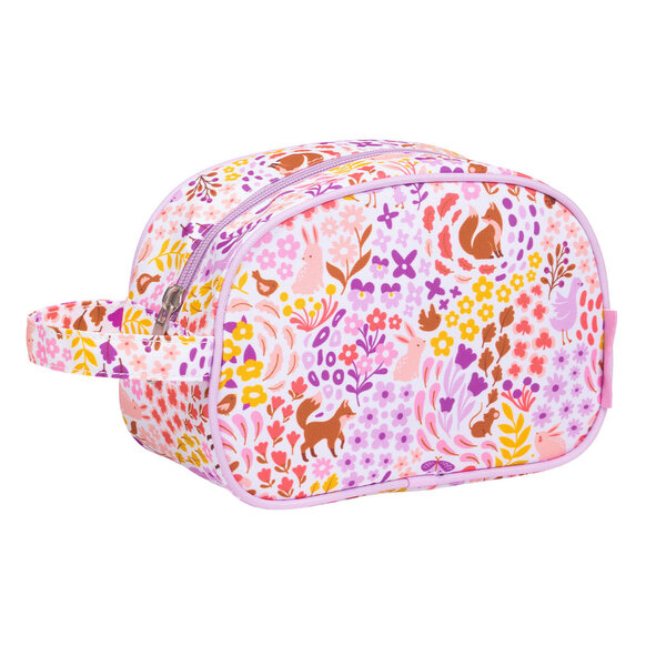 The spacious, lilac toiletry bag with flowers and foxes is ideal to take with you on holiday or to a sleepover. The toiletry bag offers a spacious compartment with enough room for a bottle of shampoo, toothbrush, toothpaste and more. The toiletry bag also has a convenient handle for easy carrying and hanging.