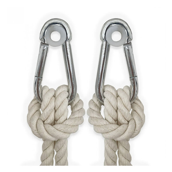 The set includes 2 carabiner hooks with a plastic ring to facilitate installation and prevent metal-on-metal friction.